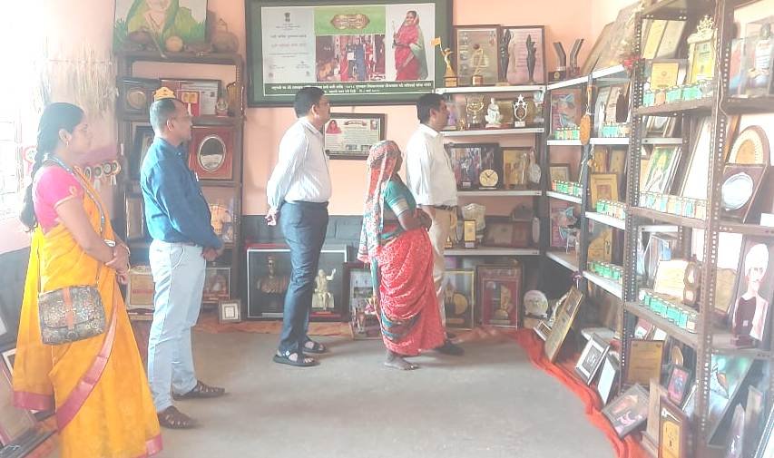 अकोले : गावरान आणि देशी बियाणे संवर्धन करणाऱ्या बीजमाता पद्मश्री राहीबाई सोमा पोपेरे यांचे कोंभाळणे येथील बायफ या आंतरराष्ट्रीय दर्जा प्राप्त संस्थेच्या माध्यमाने उभारल्या गेलेल्या देशातील पहिल्या ग्रामीण भागातील बीज बँकेला अहमदनगरचे जिल्हाधिकारी डॉक्टर राजेंद्र भोसले यांनी नुकतीच भेट दिली. राहीबाई यांना आपण नक्की बीज बँकेला भेट देण्यास येऊ असे आश्वासन त्यांनी या अगोदर दिले होते. त्यानुसार बीज बँकेला भेट देऊन त्यांनी तेथे सुरू असलेले उपक्रम समजावून घेतले.