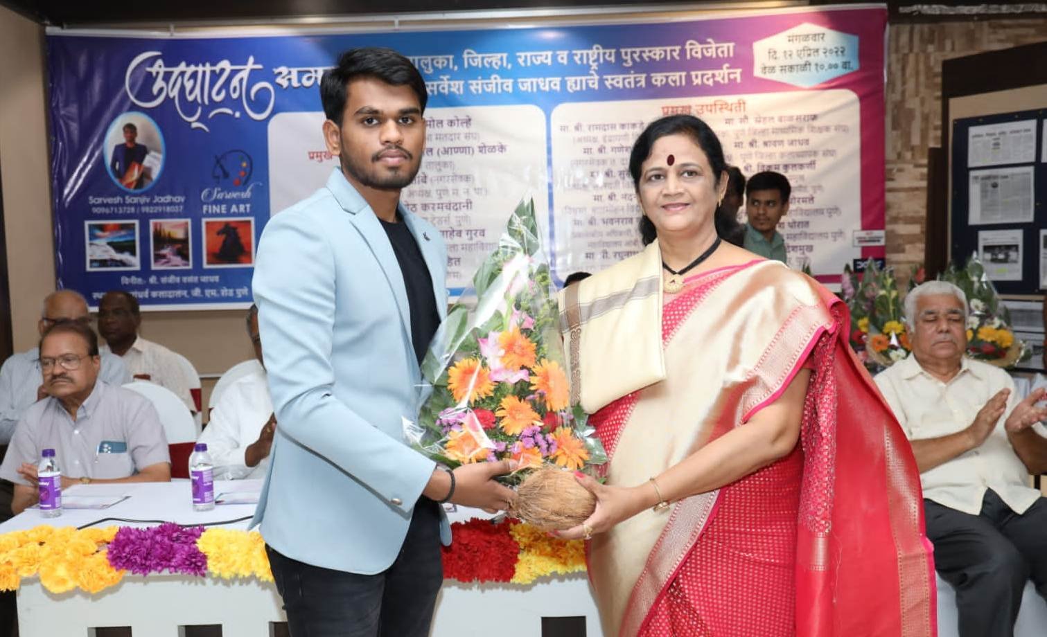 चिरंजील सर्वेश संजीव जाधव (वय वर्षे 18) सध्या तळेगाव दाभाडे येथे नुकतीच इ.12 वी विज्ञान शाखेची परीक्षा दिली असून या चित्रकला प्रदर्शनात याने बनविलेल्या 80 पेंटिंग मांडण्यात आल्या होत्या ही सर्व पेन्टिंग त्याने इ.10 वी. चा शेवटचा पेपर झाल्या पासून गेली दीड वर्षे कोविड 19 च्या लॉक डाऊनच्या काळात बनविली आहे. या प्रदर्शनास शिरूर लोकसभा मतदार संघाचे खासदार अमोल कोल्हे यांनी आवर्जून भेट दिली व चि. सर्वेश याने बनविलेल्या प्रत्येक चित्राचे निरीक्षण करून माहिती घेऊन कौतुक केले.