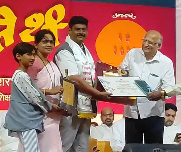 सातारा येथे करंजी येथील उपक्रमशील शिक्षक संदीप चव्हाण यांचा मा. खासदार शरदराव पवार यांच्या हस्ते सन्मान